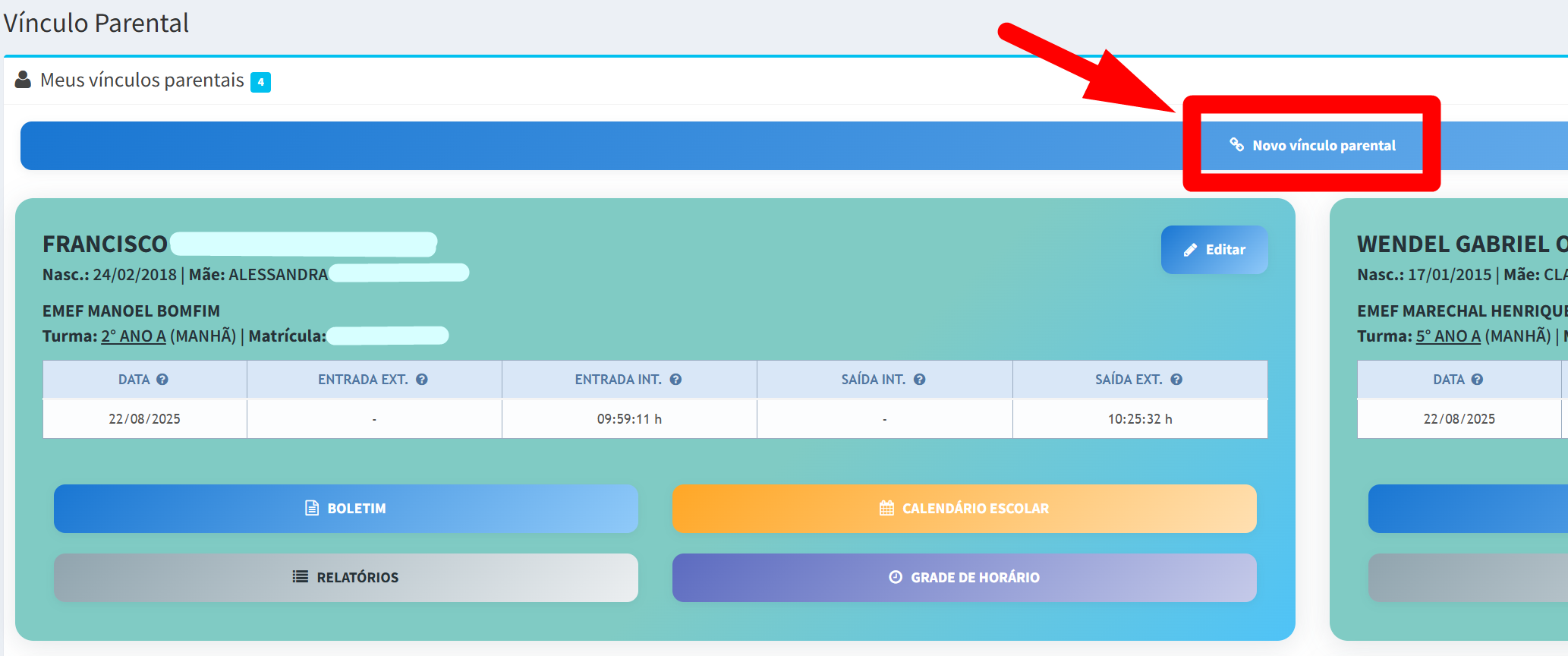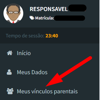 - Clicando em "Meus vínculos parentais", na barra de ferramentas, localizada no canto esquerdo do portal:
