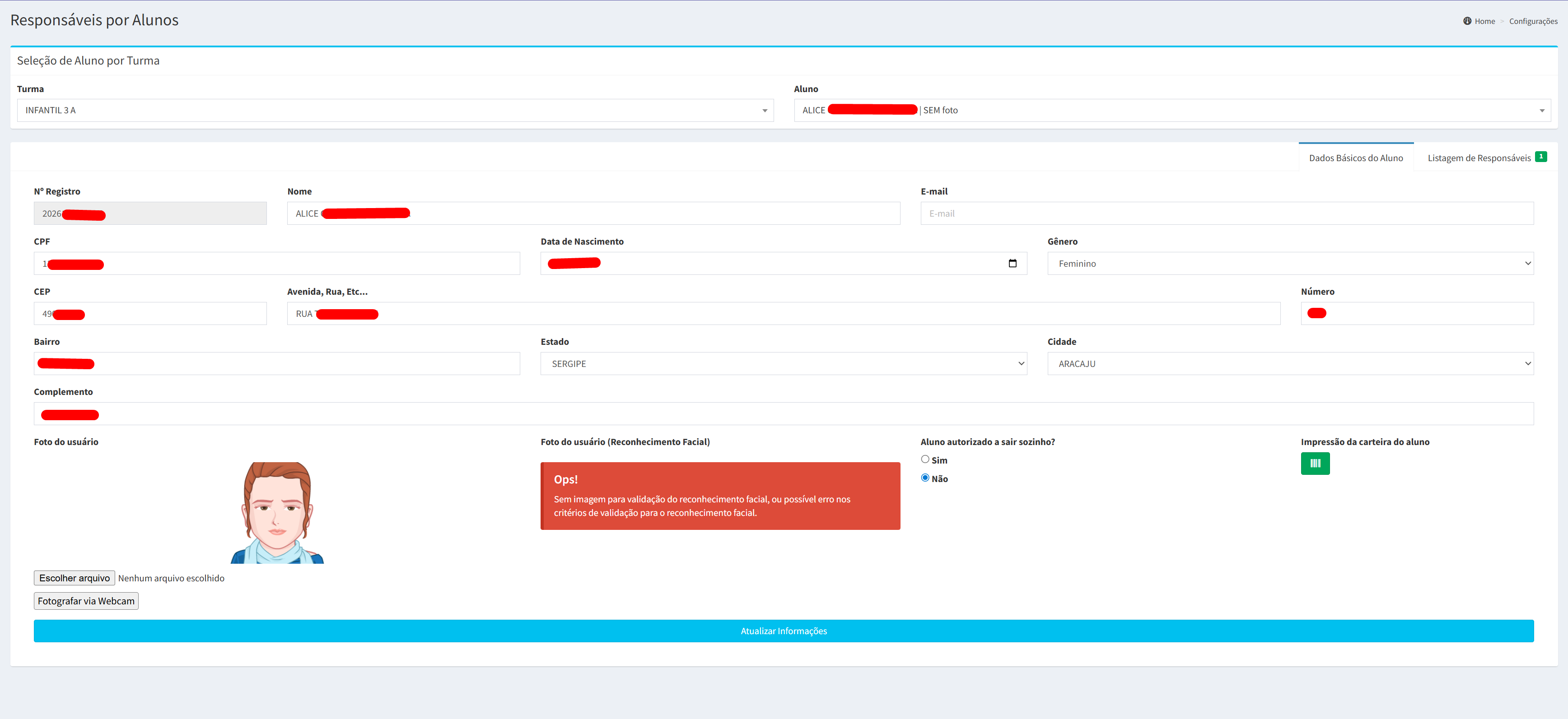 Foto do aluno (inclusive para reconhecimento facial).