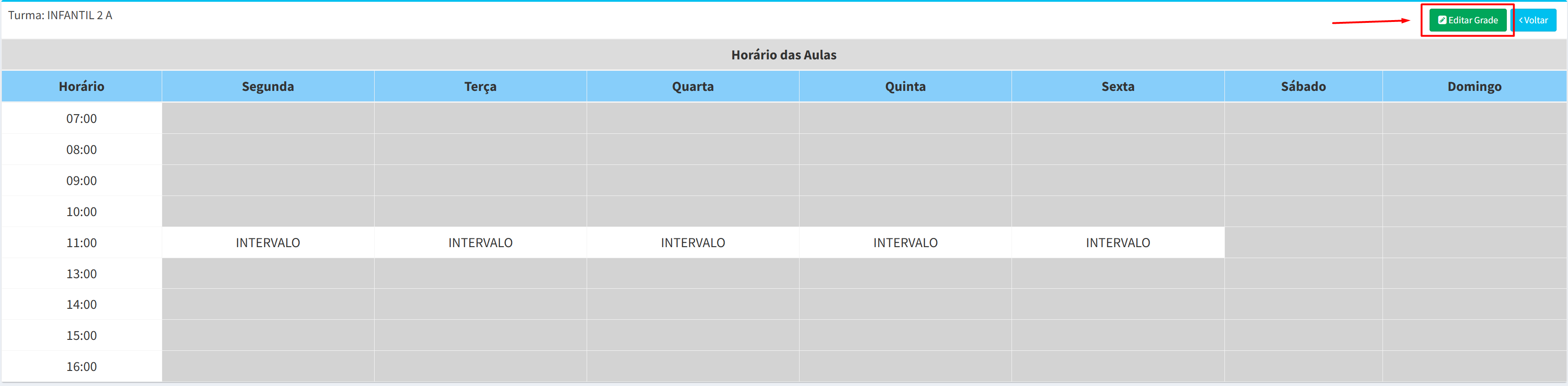 2.3- Após acessar a tela de edição da turma, clique em “Grade de Horários”: