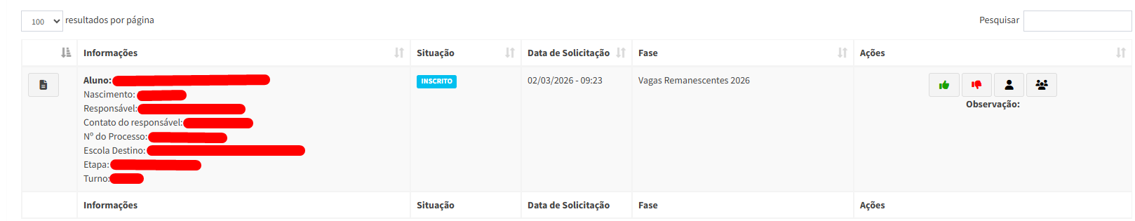 Essa aba é possível aprovar a solicitação, negar, editar as informações do estudante e editar as informações do responsável.